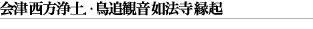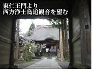 当山如法寺が、「会津西方浄土」と称されるのは、鳥追観音の大慈悲により衆生を導いてこの世の寿命を全うさせ、やがてあの世は「西方浄土」へ安楽往生が叶うとのご誓願によります。そして、この道理を示す為に、観音堂は、東西向拝口・三方開きという独特な構造になっており、東口から入り、鳥追観音に祈願したら、戻らずに西口から出ると、その彼方が「西方浄土」の世界なのです。